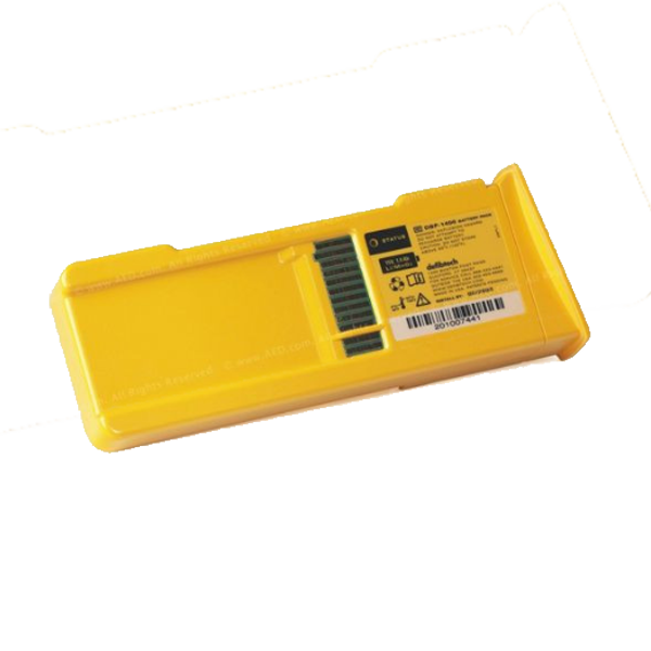 La batteria, codice DBP1400, ha una carica che dura ca. 5 anni in stand-by e permette l’erogazione di 125 scosse o 8 ore di utilizzo ininterrotto. Questa durata di 5 anni include le autodiagnosi quotidiane, settimanali, mensili e trimestrali del defibrillatore.